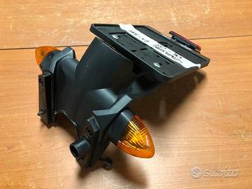 Portatarga con frecce per Kawasaki Ninja ZX-10R anni 2004 - 2005, qualche segno di usura come da foto. Possibilità di spedizione in tutta Italia o ritiro a mano presso la nostra sede.