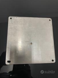 Porta targa per Harley targa europea 17,5 x17,5 in acciaio lucido cromato speddore 1,5 mm misure foro centrale per fizzaggio in foto