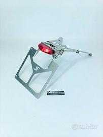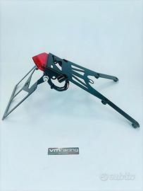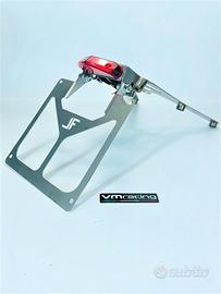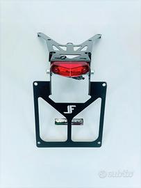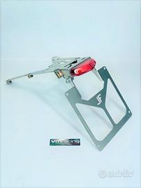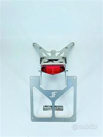 Questo modello monta sugli attacchi originali del portatarga KTM grazie alle boccole studiate appositamente (NON bisogna forare il codino).