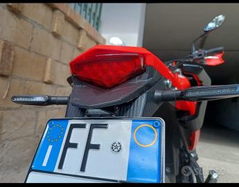 Il portatarga è realizzato in alluminio 3mm non include le frecce e la luce targa, si possono montare le frecce e la luce targa originali.