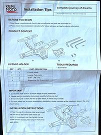 PORTATARGA per moto regolabile + Luce Targa