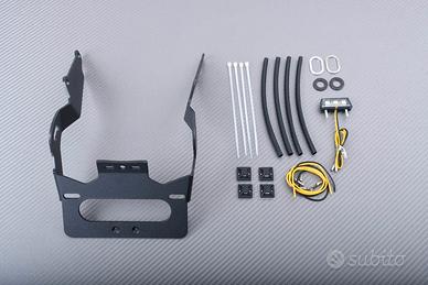 Portatarga in alluminio CNC, modello AVDB MOTO, progettato per adattarsi e dare un taglio migliore alla tua moto. Questo accessorio è venduto come nella prima immagine dell'annuncio, che mostra esattamente il contenuto del kit come lo riceverai.