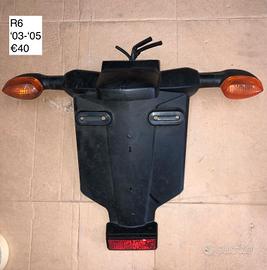 Codice ricambio: 701 Parafango posteriore Portatarga Yamaha vari modelli R1 2009-2014 (x3) R7 2022-2024 MT 09 / Mt 09 SP 2017-2020 (x5) MT 09 2021-2023 (x2) R6 2006-2008 (x2) MT 07 2018-2020 (x5) disponibile anche senza frecce MT 09 / Tracer 900 2015-2020 (x4); disponibile anche senza frecce x4 R1 2007-2008 (x2 con frecce) Fazer 800 2011-2013 (x3) R6 2003-2005 R1 codice 5MT-21629 XT 660 X 2004-2016 Parafango posteriore xsr 700 Per info/foto e chiedere disponibilità chiama o scrivi su whatsapp al 3757481018.