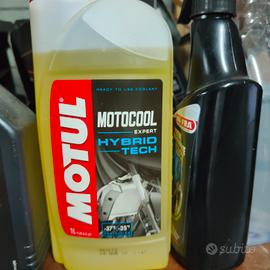 1 litro olio motore Motul 2 T. 800 ,1 litro liquido refrigerante,1 confezione grasso catena motorex,tutto. insieme.