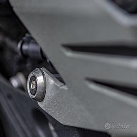 Video montaggio : youtu.be/eI4pADVjX7w Dettagli: Il seguente paramotore o protezione testate consente di proteggere i cilindri del motore boxer in maniera considerevole data la natura degli stessi in quanto esposti e potenzialmente soggetti a danneggiarsi anche con una caduta da fermo basica , la protezione infatti consentirà di aumentare la sicurezza dei coperchi testate del motore boxer. Le nostre protezioni sono un' alternativa alle barre tubolari o in alternativa è un complemento perfetto per chi desidera una protezione a 360 gradi dei cilindri . Realizzati in alluminio anodizzato ad alta resistenza , si installano rapidamente sui punti di fissaggio esistenti sul motore boxer. Il design segue le linee originali delle copri testate e le rifiniture conferiscono alla moto un aspetto elegante,inoltre grazie a dei gommini smorza eventuali urti non alterando l'integrità delle testate Nota : I copritestate o protezione cilindri seguenti sono compatibili con il motore bialbero dei seguenti modelli moto compatibili : BMW R1200R (2011- 2014) K27 BMW R1200GS ( 2009-2012) K25 BMW R1200GS ADV ( 2010-2013)K25 BMW R nineT (2014-2020) k21 BMW R nineT Pure (2016-2020) K22 BMW R nineT Racer (2016-2020) K32 BMW R nineT Scrambler (2016-2020) K23 BMW R nineT Urban G/S (2016-2020) K33 Confezione : 1 set Paramotore bmw r 1200 gs bialbero Viteria per il montaggio Specialità: Migliora la sicurezza da eventuali cadute e scivolamenti proteggendo le testate del motore boxer che per natura è molto esposto. Installazione facile utilizzando i stessi punti di fissaggio delle testate originali , non si richiede nessuna modifica. Realizzati in Alluminio Anodizzato verniciato a polvere ad alta resistenza con dischetti fresati a laser CNC.