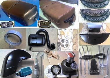 Pezzi di ricambio di carrozzeria e motore per VESPA P X 125 150 200 dal 78 al 89 ARCOBALENO PX150E PX125E PX200E KIT RESTAURO 205 EURO (FOTO 1-2-3): Fanale anteriore Manopole nere Piaggio Leve freno frizione +2 viti Scritta VESPA ant Stemma + Targhetta Piaggio ant Nasello copristerzo Coprimolleggio Cresta parafango Salvabordo originale Gommini per: freno, pedivella,leva mix, raccordo tubo benzina e passacavi Guarnizione serbatoio Guarnizioni nere scocche laterali Guarniz bauletto Scarpe cavalletto Strisce pedane battitacco complete Tappetino centrale Tappeto grande 2 Tappi tamburo 4 vetrini frecce Fanalino Stop completo Cornice targa cromata COSTO 205 EURO A PARTE ALTRI ACCESSORI COI PREZZI: E = Euro Serie fili nuovi + guaine E20 3 copertoni 3.50-10 neri E58; bianche E89 3 Camera d'aria E15 Cerchio ruota E16 Sella originale E109 Paraspruzzi post. E14 Copriruota scorta E10 Serratura Bloccasterzo E10 per Bauletto E14 Coppia listelli tappetino E10 Specchio cromo E18 Ammortizzatore post. completo E35; ant. E38 Impianto elettrico originali E45 Interruttore luci + commutatore frecce E32 Quadro on/off sul manubrio E18 Pulsante stop E5 Contachilometri E45 per arcobaleno E69 Cavalletto E18 Coperchio manubrio E24 2 Spie manubrio E10 Pedana in ferro E85 Scudo intero E189 Ganasce Ant. + Post. E18 Parafango E38 Bauletto portaoggetti E79 Cofani laterali E179 4 frecce bianche o arancioni complete E48 Scritta laterale E6 Cuscinetti di sterzo E25 Pedale freno E20 2 Ganci cofani esterni E16 Gruppo termico 150cc PX125 PX150 E125; 200cc PX200 E155 Marmitta per 125 150 vnx2m vlx2m E46 per 200px vsx1m vse1m E56 Cuscinetti albero mot. + PARAOLI E32 Serie guarnizioni motore E7 Volano e statore E179 vnx1m vlx1m (foto 27 ) Copriventola E20 Soffietto carburatore E7 Rubinetto benzina + asta E15 PX PE SIGLA TELAIO vnx1t vlx1t vsx1t vnx2t vlx2t vsx2t CONTRASSEGNO