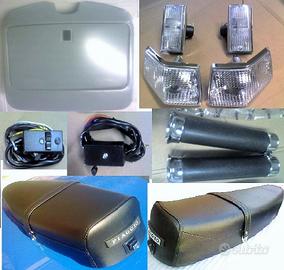 Pezzi di ricambio di carrozzeria e motore per VESPA P X 125 150 200 PE dal 78 al 89 ARCOBALENO PX150 PX125 PX200 KIT RESTAURO 205 EURO (FOTO 1-2): Fanale anteriore Manopole nere Piaggio Leve freno frizione +2 viti Scritta VESPA ant Stemma + Targhetta Piaggio ant Nasello copristerzo Coprimolleggio Cresta parafango Salvabordo originale Gommini per: freno, pedivella,leva mix, raccordo tubo benzina e passacavi Guarnizione serbatoio Guarnizioni nere scocche laterali Guarniz bauletto Scarpe cavalletto Strisce pedane battitacco complete Tappetino centrale Tappeto grande 2 Tappi tamburo 4 vetrini frecce Fanalino Stop completo Cornice targa cromata COSTO 205 EURO A PARTE ALTRI ACCESSORI COI PREZZI: E = Euro Serie fili nuovi + guaine E20 3 copertoni 3.50-10 neri E58; bianche E89 3 Camera d'aria E15 Cerchio ruota E16 Sella originale E109 Paraspruzzi post. E14 Copriruota scorta E10 Serratura Bloccasterzo E10 per Bauletto E14 Coppia listelli tappetino E10 Specchio cromo E18 Ammortizzatore post. completo E35; ant. E38 Impianto elettrico originali E45 Interruttore luci + commutatore frecce E32 Quadro on/off sul manubrio E18 Pulsante stop E5 Contachilometri E45 per arcobaleno E69 Cavalletto E18 Coperchio manubrio E24 2 Spie manubrio E10 Pedana in ferro E85 Scudo intero E189 Ganasce Ant. + Post. E18 Parafango E38 Bauletto portaoggetti E79 Cofani laterali E179 4 frecce bianche o arancioni complete E48 Scritta laterale E6 Cuscinetti di sterzo E25 Pedale freno E20 2 Ganci cofani esterni E16 Gruppo termico 150cc PX125 PX150 E125; 200cc PX200 E155 Marmitta per 125 150 vnx2m vlx2m E46 per 200px vsx1m vse1m E56 Cuscinetti albero mot. + PARAOLI E32 Serie guarnizioni motore E7 Volano e statore E179 vnx1m vlx1m (foto 27 ) Copriventola E20 Soffietto carburatore E7 Rubinetto benzina + asta E15 PX PE SIGLA TELAIO vnx1t vlx1t vsx1t vnx2t vlx2t vsx2t CONTRASSEGNO