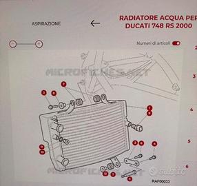 Vendo radiatore originale per ducati 748 rs. Puo’ essere montato anche su modelli 916 - 996 - 998 Fornisco volendo staffe in alluminio da poter montare le ventole originali di serie.