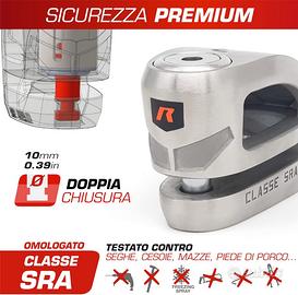 RADIKAL RK310S Blocca Disco per Moto, Sicurezza Premium, Antifurto Moto Omologato SRA, Doppio Bloccaggio Ø10, Acciaio Inossidabile, Esclusivo Design Doppio Ponte, Lucchetto Bloccadisco Scooter