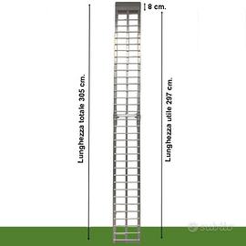 dimensioni della rampa aperta: 305 x 30 x 5 cm. (lunghezza utile, escluso appoggio 220 cm.)