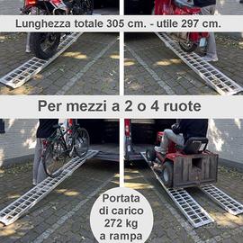 Utilizzandone due, è possibile caricare anche veicoli a quattro ruote come quad, minicar, ATV, go-kart, trattorini e altre attrezzature, nel rispetto della portata massima di 272 kg per singola rampa.