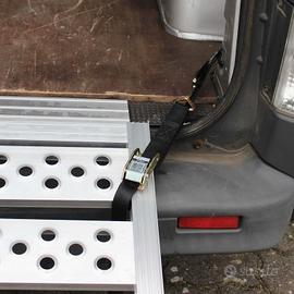 Con una lunghezza di 215 cm e una portata di oltre 10 quintali, questa rampa è pensata per resistere a carichi importanti, distribuiti su tre elementi, ognuno capace di sostenere fino a 340 kg. È perfetta per veicoli e motocicli con un interasse superiore a 80 cm. Per assicurarla al tuo furgone durante il carico, trovi in dotazione due cinghie con morsetti e ganci protetti da gomma. Insomma, un'ottima alternativa a binari di carico meno stabili o a pedane fisse.