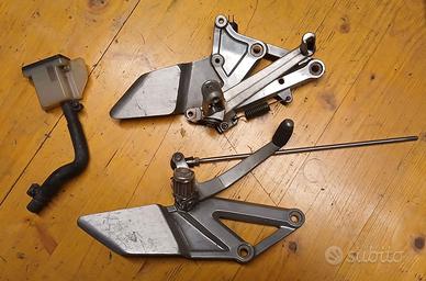 Marmitta inferiore senza silenziatore 100,00 . Tre dischi originali buoni 150,00. Pedane originali perfette con serbatoio freno posteriore 300,00.