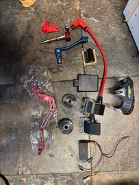 VENDO RICAMBI HM50: -2 rotori mvt dd -2 bobine mvt dd -1 centralina mvt dd - radiatore originale hm -pompa freno con tubo anteriore hm -tubi freno hm50 -leva freno posteriore egal anodizzata rossa nuova per hm ma non so che anno -bielletta in ergal rossa -fermo bielletta stanpato in 3d rosso -pedalina cambio anodizzata blu -pacco lamellare top tpr -pacco lamellare originale -marmitta originale hm