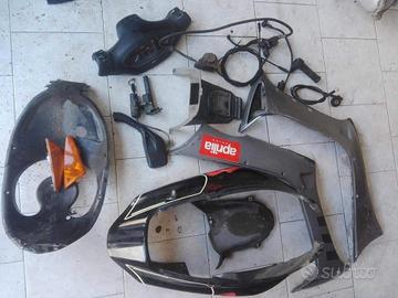 Vendo vari ricambi sr replica disponibile altro non presente in foto kit carene scudo controscudo pedana fasce laterali telaio con libretto piccolo stop faro codone sella sotto sella cilindretti chiave manubrio contachilometri cavalletto avantreno forcella ruote cerchi gomme telaietto reggi blocco impianto elettrico manopole teva freno pompa pinza freno cavo acceleratore carburante trasmissione marmitta variatore frizione volano statore magnete