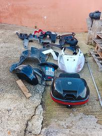 vendo tutti pezzi elencati in foto alla modica cifra di 50 euro se presi tutti in blocco sino 15 euro al pezzo !! disponibile telaio reggi blocco forcella impianto elettrico sella impianto frenante e cavalletto laterale radiatore blocca sterzo con chiavi e tanti altri ricambi / spedizione a carico del acquirente non perditempo visto e piaciuto