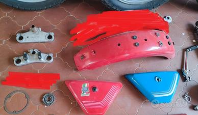 Vendo ricambi moto epoca CAGIVA SST 125-250 (prezzi indicati per ciascun ricambio): - marmitta (per cc. 125) : 90 euro; - cerchio posteriore (7 razze) completo: 70 euro; - faro anteriore, parafango posteriore, pedale avviamento: 35 euro; - fianchetti (uno rosso, l’altro azzurro): 30 euro cadauno; - comando manopola gas: 25 euro; - piastra superiore forcellla, perno ruota posteriore con registri ruota: 15 euro; - portabatteria, piastra inferiore forcella, perno ruota anteriore, 4 anelli in gomma per staffe portafaro: 10 euro; - piccoli dettagli: 5 euro;