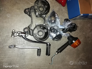 Per SST 250 corona nuova e altre moto (vedere elenco applicazioni) ,pignone Z 16 (350) e 40, tubo freno treccia universale L 100 nuovo e.20, portapacchi usato 30 2 parafanghi 18 e 19 " 30 cad , ruota posteriore, interruttore freno, faro tutto in ottime condizioni.