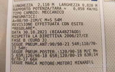 VENDO ANCHE IL TELAIO CON IL RELATIVO LIBRETTO (DOPPIA OMOLOGAZIONE ENDURO E MOTARD con 6 varianti di pneumatici (VEDI FOTO DEL ALLEGATA)