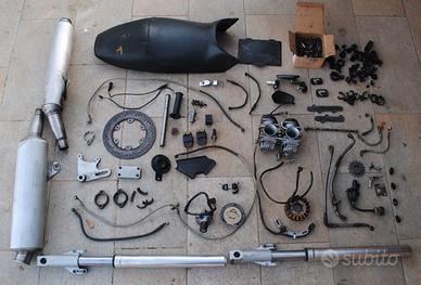 ricambi ducati monster 600 750 900 carburatori filtro olio disco freno posteriore Pignone, catena, corona sensore interruttore freno posteriore sensore interruttore cavalletto mozzo ruota posteriore collettori carburatori vaschette recupero acqua raffreddamento ed espansione clacson plastica sotto sella Flangia freno posteriore Registri e perno ruota posteriore Coperchi copri cinghie guide catena forcellone tubi treccia olio freno posteriore tubi treccia olio attuatore flange collettori scarico Plastica coperchio cablaggio elettrico regolatore di tensione Cod. 24710981A Collettore marmitta Perno ruota anteriore Perno forcellone Centralina accensione Archetto forcellone Tappo benzina, serratura sella, nottolino avviamento con chiave Perno serbatoio Supporto mono anmmortizzatore Motorino avviamento Asta cambio completa Cavalletto Pompa attuatore Forcelle steli Teleruttore motorino avviamento Relais Bobine candela Regolatore tensione Acceleratore con manopole e cavi Morsettiera avviamento stop Morsettiera devio luci frecce Impianto elettrico Supporto pedane Mono ammortizzatore posteriore Telaietto faro anteriore Pompa freno anteriore Supporto porta relais Leva aria Aggancio sella Supporto aggancio sella Pressostato olio Marmitte Pinza freno posteriore Fermi in gomma batteria Cerchio posteriore con gomma al 80 % Sella da rifoderare Motore completo o a pezzi cc 750 Statore Ruota libera Carter statore Carter frizione Frizione Albero motore Cambio per 750 cc Cambio per 600 cc Pompa olio Testate Cilindri e pistoni Pikap Tubi con raccordi per serbatoio olio Carburatori Specchietti da manubrio Fascette gomma per impianto elettrico Viteria varia Riser manubrio
