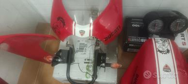 Vendo vari ricambi derivazione Ducati Monster S4 ma compatibili con altri modelli anni e motorizzazioni :600 620 695 750 900 1000 S2R S4 S4R S4RS (sempre e comunque da controllare prima dell'acquisto) sotto sono elencati tutti i ricambi disponibili anche se non presenti in foto, quindi per foto ed info preferisco contatto WhatsApp 377 590 4536 Mirko puntale VTR rosso con staffe fissaggio coprisella monoposto vtr originale Ducati cerchi Marchesini originali M S4 forcelle anteriori revisionate con olio Ohlins e Kit Andreani forcellone posteriore Bibraccio nero verniciato a polvere supporti pedane DX + SX nere verniciate a polvere monoammortizzatore posteriore originale ducati Monster S4 sachs revisionato da poco con molla blu verniciata a polvere faro anteriore + staffe + supporto cupolino neri verniciati a polvere Cupolino anteriore abs rosso originale ducati M S4 Serbatoio originale in metallo con tappo serbatoio in ergal rosso con fascia bianca ed adesivi tutto sotto verniciatura trasparente derivazione ducati Monster S4 Kit Tubi acqua raffreddamento in silicone blu Radiatore raffreddamento acqua con protezioni laterali in carbonio