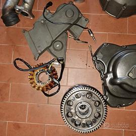 Pezzi provenienti da Ducati Monster 600 '98. Pompa freno anteriore 15 (monodisco) Pompa benzina 10 (Monster carburatori) Meccanismo apri sella 5 Stop 5 Sella 25 Targhetta numerata 5 cad. Manubrio piega a 45 15 Ruota posteriore completa 17x4.5 35 Quadro spie 35 Galleggiante 50 Staffe reggi scarichi 5 cad. Rotore/Alternatore 35 Cover dx 15 Frizione 30 Testate 25 cad. Cilindri 25 cad. Pistoni 15 cad. Pompa olio 35 Blocco motore (mancano solo cover sx e copricinghie) 50
