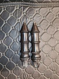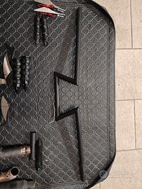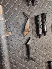 Manubrio Z-Bar Nero (Condizioni: Pari al nuovo): Modello Z-Bar aggressivo con finitura nera opaca. Ideale per dare un look chopper/bobber estremo alla moto. Montaggio universale per riser da 1 pollice (25,4mm). Prezzo: € 80 Scarichi "Bendati" Custom: Terminali con bende termiche antracite già applicate. Includono i paracalore forati per un look "garage" molto ricercato. Sound cupo e profondo. Prezzo: € 160 (coppia) Set Pedane: pedane anteriori nere, ideali per chi vuole eliminare le cromature originali. Prezzo: € 15 Manopole Custom a Punta (Spike): Manopole nere con terminale a punta, ottima impugnatura e design aggressivo. Prezzo: € 15 Specchietti custom Spike per look aggressivo Prezzo: € 20 Frecce/Luci Supplementari: Coppia di indicatori di direzione con lente arancione e supporto cromato. Prezzo: € 20 Terminali di scarico con finitura forata: € 70 PREZZI TRATTABILI VENDUTI SIA SINGOLARMENTE CHE INSIEME Per altre foto o informazioni non esitare a contattarmi