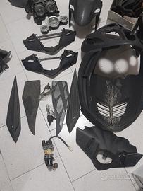 telaio con sospensione220e codone carena dietro di vari colori 80e carena davanti nera fume 250e con farò e frecce pedana bella 70e cupolino perfetto 80e sottopedana 80e kit serrature chiave unica x le 2 serrature 100e devio luci 35e rinvio 30e cebtralina rossa 55e statore 60e i cavalletto centrale 35e cavalletto laterale 25e blocco motore ad aria 150e controscudo 60e sella nuova 60e frecce fari cornici cromate 30e marmitta giannelli marmitta originale 55e forcella 110e cupolino volante nero originale 80e parafango davanti 45e parafango dietro 40e faro davanti 40e faro dietro 40e strumenti contachilometri 60e impianto elettrico60e gomme del 13 seminuove 25e l una cerchi del 13 55e l uno pompe freni ecc ecc telaio con documenti 200e e tutto il resto x info NO MEIL SI WAZ AP O CHIAMATA AL 3925061276 grazie spedisco in Italia dopo pagamento ciao grazie
