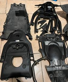 Scocca sottopedana (15€) Maniglione portapacchi (20€) Copriaste parabrezza (15€) Cornici pedaline passeggero ( 30€) Pedana (35€) Carena copriserbatoio (20€) Scocca codope part. bassa (20€) Collettore (15€) Cavalletto centrale (20€) Cavalletto laterale con sensore (30€) Parasassi radiatore (40€) Parafango motore (20€) Staffa supporto marmitta (20€) Ammortizzatori (40€) Cavi gas (20€) Radiatore e ventola (50€) Specchietto dx (10€) Pompe freno (25€) al pz. Coperchio batteria (20€) Faro post (15€) Frecce (30€) al pz. Airbox (20€) Cromatura carena ant. (30€) Scocca portastrumentazione (30€)