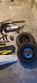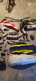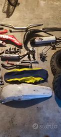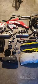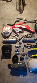 •mascherina con led •fianchetti anteriori hm con grafiche •cassa filtro + filtro fantic 50 •codino hm •coprisella giallo e blu hm •leveraggi mono posteriore •testa originale 50 •terminale big One •terminale gianelli •terminale katrace sciorty •marmitta originale pancia+terminale vent 50 •impianto frenante anteriore pinza + pompa •coppia di cerchi gommati typhone piaggio con disco •piastre anteriori steli normali no rovesciati •manubrio pro taper Yamaha •traversino manubrio •manopole originali piaggio typhone •catena •cassa filtro typhone 50 •selettore cambio rosso am6 •copri miscelatore am6 •tendi catena per forcellone •clacson •ingranaggio motorino di avviamento typhone •para pancia marmitta •per i ruota anteriori e posteriori fantic •tubi radiatore •gruppo termico 50 AC piaggio •vendo anche bobina fantic •parasteli vent 50 nuovi
