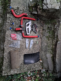 Pedane ergal_tabella piatta_manopola gas_interruttore frecce e fari_perno ruota post. _ braccetti testata_parapignone e pignone_tappi ergal_ guida catena_paraschizzi post._ braccetti paramani_ clacson_ supporto gabbia filtro.