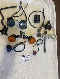 Ricambi originali usati (ove non riportato diversamente): serbatoio originale presenta qualche striscio, interno buono 150 parafango posteriore 100 fanalino posteriore con impianto 40 parafango anteriore rinforzato sotto il piantone 100 fianchetto dx 80 fianchetto sx 80 freccia anteriore destra e sinistra con supporti 35 l’una devio luci sx 60 devio luci dx 50 acceleratore completo 35 cavi gas A+B 35 cavo aria 25 cavo conta giri 25 cavo frizione 25 cavo e presa conta chilometri ruota ant 50 ruota ant completa 150 ruota post completa 150 forcellone + cinematismi 80 mono ammortizzatore 120 scatola filtro 100 forcelle dx/sx con soffietti revisionate 220 piastra + piantone sterzo 120 paracoppa alluminio 60 scatola anteriore impianto elettrico 40 scatola porta attrezzi 30 bracciale freno ant con stop leva e cuffia 40 bracciale frizione con leva e cuffia 40 pedale freno post + asta e molla 40 cover chiave in plastica 25 impianto elettrico revisionato 120 regolatore di tensione 80 centralina accensione 120 carburatore revisionato 150 carburatore Keihin revisionato 180 blocco accensione con porta casco e chiavi 100 porta pacchi 50 carter catena 50 conta chilometri testato 100 conta giri testato 100 cambio completo di forchette e ingranaggi in ottime condizioni 200 carter motore superiore e inferiore integri sedi pin e cuscinetti integri 150 albero motore con bronzina spinotto nuova 200 carter + statore 150 carter frizione 100 frizione completa 100 volano accensione 50 pick up 60 bobina accensione 60 albero di avviamento completo 80 pedalina accensione 50 albero bilanciamento completo 80 pedale cambio 30 testa completa di coperchio e valvole (bilancieri non perfetti) 100 albero a camme con corona 150 tenditore distribuzione 80 scorri catena distribuzione 60 pompa olio 120 spese di spedizione con corriere espresso escluse.