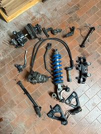 Vendo: serbatoio bianco serbatoio nero Faro anteriore piu mascherina bianca Strumentazione km e contagiri Cablaggio elettrico completo Forcellone posteriore Un motore rotto Soffietti blu Se cercate altro scrivetemi Materiale visibile all eur