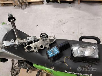 Ricambi moto Kawasaki KLR 650 C modello anni 2000/2007 proveniente da moto incidentata tenuta maniacalmente, con soli 22000 km Pezzi disponibili e aggiornati in condizioni ottime: - motorino avviamento starter € 75 - plastiche posteriori 'verdi" € 100 - cablaggio completo € 120 - pedaline anteriori e posteriori € 20 cad - pedale marce € 20 - pedale freno posteriore con sensore € 45 - pinza freno posteriore completa di pompa € 70 - faro anteriore € 40 - Telaietto posteriore completo di cassa aspirazione e parafango € 180 - portatarga e faro posteriore e plastica verde codino € 140 - cavalletto con sensore € 25 - pinza freno anteriore completa di pompa maniglia/leva e cavo € 75 - Mozzo ruota anteriore € 15 - marmitta completa originale € 90 - Cavo Contachilometri + Ingranaggio € 20 - forcella posteriore completa di perno ruota, plastica copri catena € 120 - nottolini porta ammortizzatori anteriori con piantone € 70 - vaschetta liquido raffreddamento (un gancio tagliato ma funzionale) € 10 - doppio clacson € 20 - Ventola radiatore € 25 - catena €40 - due maniglioni posteriori € 25 - manopola acceleratore con cavi € 25 - serbatoio con lieve botta impercettibile € 50 foto disponibili Sono tutti prezzi in linea o sotto il valore di mercato, basta verificare sui vari siti. Non sono trattabili Art.1 Non rispondo a nessuno per offerte a ribasso. Preferisco ritiro a mano, nel caso di spedizione, imballo fatto bene con massima cura. Spesa di spedizione pezzi voluminosi da quantificare, per gli altri pezzi in linea con i prezzi di subito Cessione dei vari pezzi nella formula visto e piaciuto Per la ricerca No affaristi No perditempo No regalo