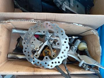kit motore+impianto elettrico con chiave e radiatore e scarico €1.250,00,kit avantreno forcella, ruota impianto frenante parafango €600,oltre a quello in foto ho altri ricambi chiedete pure,si valuta anche a pezzi singolarmente ,Domenico