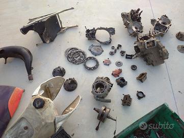 vendo come da foto ricambi KTM 250 dal 89 al 98 serbatoio completo di.tappo staffe e rubinetto convogliatori marmitta coppia carter centrali alberi motore cambio completo campana cestello piattelli dischi frizione coperchio porta molle pompa acqua carter freziione coperchio pompa acqua alza valvola carter pompa acqua carburatore cassa filtro telaietto sella volano magnete centralina testata copri volano e altre minuterie contattare solo gente seria e intessata all acquisto contatto solo telefonico 3286343932