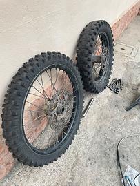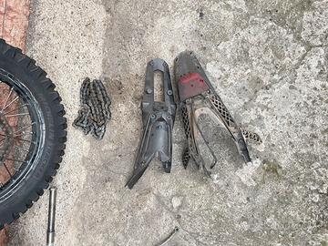 Vendo per inutilizzo pezzi di ricambio per KTM EXC 125. Dispongo anche di altri pezzi non in foto ma visionabili sul profilo di subito. (Plastiche, Piastre complete, Paramotore, scarico…) Pezzi in foto: -Cerchi Enduro gommati 21/18 con corona da 50 e dischi inclusi con eventuale catena per rapporti 13/50 (manca solo un cuscinetto al posteriore 20€?) - Pompa Freno Brembo originale ktm (da revisionare) con tubo freno originale - Portatarga originali KTM Per prezzi ed info su tutto, scrivetemi su subito. No perditempo grazie.