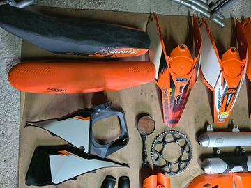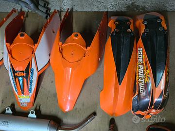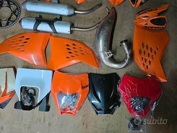 Compatibilità: Le plastiche e gli scarichi KTM 2008-2011 sono montabili anche su altri modelli 2T/4T della stessa fascia di anni.