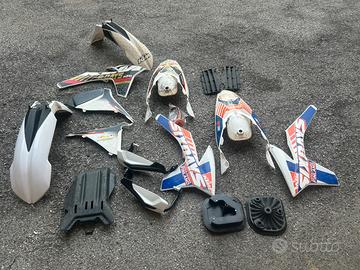 - set di plastiche arancio completo anche di paramani per Exc 2012-2016 in discrete condizioni (presentano qualche crepa ma sono tranquillamente utilizzabili): 80€