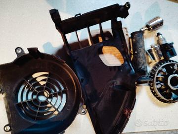Kymco People 2001 2011 lo scooter aveva 20mila km ed era perfettamente funzionante Vendo pezzi vari . Per le parti in elenco sono disponibili le rispettive foto. Basta richiederle. carburatore50 carter filtro aria25 centralina elettronica30 cruscotto e quadro strumenti100 fanale posteriore90 fanale anteriore50 marmitta completa con collettore scarico80 leve e pompe freni (due)50 manubrio40 portatarga40 pinza freno ant40 portapacchi maniglione30 cablaggi e comandi elettrici30 regolat. tensione90 scudo ant + indicatori direzione/ frecce 50 carena posteriore completa e tagliata60 sella + sottosella80 volano e carter25 relè avviamento 25 pompa benzina35