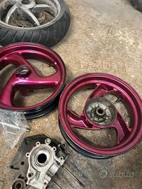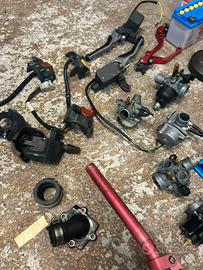 vendo vari ricambi scooter prezzi da concordare in privato: -radiatore -pacco lamellare -pacco lamellare alluminio (VENDUTO) -carter(VENDUTI) -rapporti -collettore aspirazione (VENDUTO) -cerchi aprilia sr -cerchi viola -pompa freno -cablaggi interruttori -naked -rialzo (VENDUTO) -3 carburatori da 12 -carburatore da 17.5 -marmitta per 70 -mascherina aerox - adattatore da mettere sul collettore originale del 12/21 per mettere il carburatore 24 -accensione euro 0 -cilindro due plus ad aria da rettificare -cilindro polini per piaggio ciao/si/bravo -frizione originale -campana -scatola filtro -copertura motore ad aria -batterie -leve -ventolino -bobina -molla di contrasto gialla e originale -disco freno
