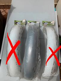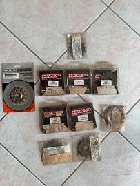 Vendo ricambi per trasmissione, motore e raffreddamento per moto off‑road. Disponibili corone posteriori: Kawasaki KX 46 denti €16, Suzuki/Kawasaki 53 denti WF9117‑53 €15, corona in alluminio KTM 49 denti codice 1251‑012 €30. Disponibili vari pignoni: Moose Racing KTM 14 denti €10, Kawasaki KX 125 12 denti (94‑98) €7, Kawasaki KX 125 13 denti (94‑98) €7, Kawasaki KDX 200 / KLX 250R / KX 250 / KLX 300 / KX 500 13 e 14 denti €7, KXF 250 13 denti €7, KW KXF 250 13 denti €7, Suzuki RMZ 250 / RM 65 / RM 125 12 denti €7, Husqvarna 449‑510‑630‑360 13 denti €7. Presenti guarnizioni motore Kawasaki KXF 450 2009‑2010, guarnizioni motore KXF 250 2008 e 2009.Disponibili tappi radiatore alta pressione per moto giapponesi €10 e €15, tappo radiatore €20, tappo serbatoio Acerbis effetto carbonio €10, tappo serbatoio in titanio KXF 250‑450 2006‑2008 e YZ/YZF 2002‑2008 €20, tappi serbatoio con chiave (2 pezzi) €15. Parafango bianco Yamaha €15 compatibile con YZ/WR 125‑250 2000‑2005, YZF/WRF 250 2001‑2005, YZ/WR 426F 2000‑2002.Disponibili anche 2 parafanghi moto d’epoca grigi €15 ciascuno. Disponibili copridisco anteriori Acerbis rosso, blu e verde €15, copridisco posteriori blu, verde e giallo €10.Presenti kit di montaggio copridisco posteriore per Yamaha YZF 250/450 2006‑2007 €15, Kawasaki KXF 250/450 2006‑2007 €15, KTM SX/SXF/EXC/EXCF 2007‑2008 €15, Suzuki RMZ 250 2007 €15. Disponibile copri sella verde antiscivolo Kawasaki €20 e copri carter KTM in carbonio lato frizione €30.Disponibile scarico / terminale / silenziatore KTM EXC‑F 250‑350‑450‑500 anni 2012‑2014 €100.