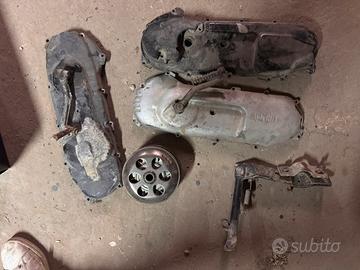 Vendo copri Carter minarelli braccio lungo e corto, cavalletto laterale scarabeo 50 minarelli, gruppo correttori, frizione e campana montati su liberty 125.
