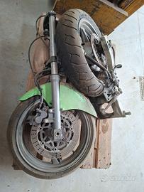 Vendo ricambi ninja 600, dal 98 al 2002. Vendo preferibilmente in blocco cerchi anteriore e posteriore completi di dischi, pompe freno, forcelle, piastre, forcellone posteriore.