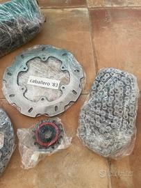 Kit di trasmissione per Caballero 500 smontati da una moto nuova mai usati corona,pignone,catena,disco freno posteriore,e 2 camere d’aria tutto originale e nuovo mai usato