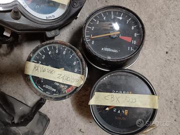 Blocco ricambi originali moto anni 70/80/90, contachilometri, fiancatine, fari, leveraggi vari, mezzi sterzi in alluminio, steli, forcelle, marmitte , etc. etc .