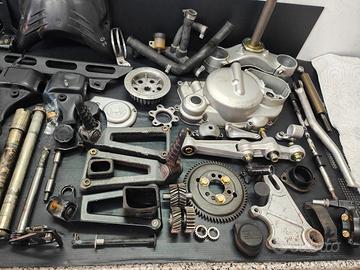 Vari ricambi per Cagiva Mito EV, statore , rotore, cuffie fanali, perni ruota, sensori, pistone, cambio, centralina CTS, piastre, leve freno anteriore, paracatena, coperchio filtro aria, regolatore di tensione, pedane passeggero Raptor, coperchio frizione, motorino di avviamento, ruote, tubi acqua, sostanziali, carburatore 28 per SP525, ingranaggi, ruota avviamento, cavalletto, leveraggio ammortizzatore posteriore e altro, prevalentemente EV, quasi niente per fari tondi.