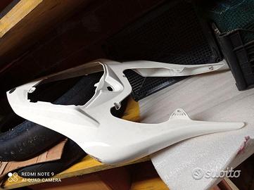 Corpo farfallato, cablaggio bobine,Scarichi completi originali nuovi,Forcellone,pompa freno posteriore,pinza freno posteriore,ventole,pedane posteriori,codone bianco da rivedere,alcune plastiche,ecc no carene.. .