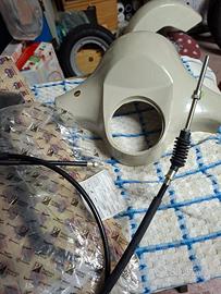 Vendo lotto di ricambi nuovi composto da: Copri manubrio vespa PX Coppia specchietti retrovisori Cavo freno scooter Liberty