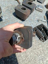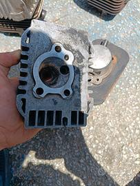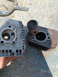 2 cilindri uno 50 cc e uno alesato di entrambi non ho il pistone. Testa pistone e cilindro senza fasce eco 50cc. Testa pistone cilindro fasce e spinotto Polini d43 65cc purtroppo si deve fare una boccola allo scarico che è spaccato per il prezzo scrivete.
